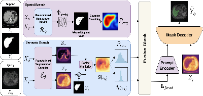 We also propose a confidence-weighted dynamic gating scheme to fuse these context maps into a single dense prompt, and re-purpose a frozen foundational segmentation model, SAM-Med3D,